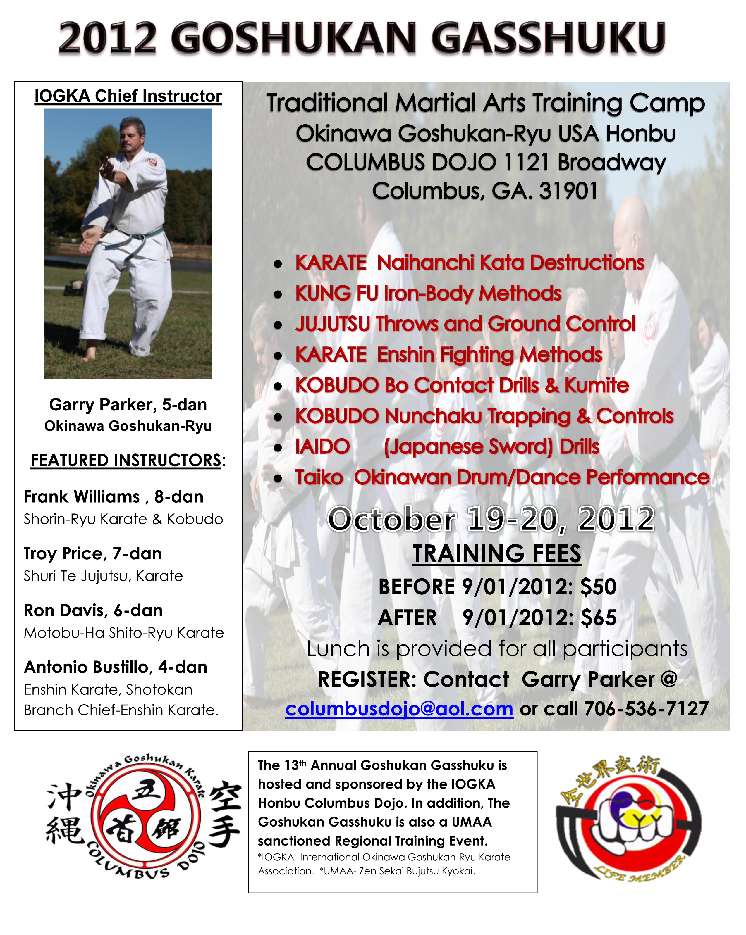 1999-2024 The Columbus Dojo celebrates 25 years serving, leading, teaching and inspiring!March 15, 2024Contact iogka.okinawa@gmail.com to register for this event.Columbus Dojo